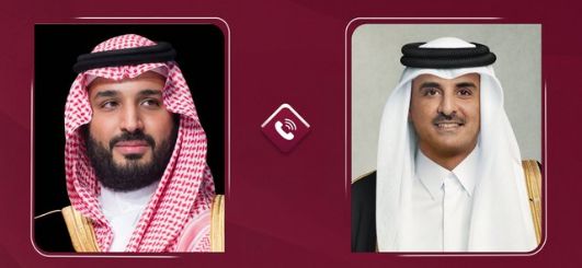 تلقى صاحب السمو الملكي الأمير محمد بن سلمان بن عبدالعزيز آل سعود ولي العهد رئيس مجلس الوزراء اتصالا من صاحب السمو الشيخ تميم بن حمد آل ثاني أمير دولة قطر ، استعرضا خلاله مستجدات الأوضاع على الساحتين الإقليمية والدولية محل الاهتمام المشترك.
